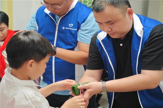 端午临近时,“蓝马甲”又化身“爱心守护者”,开展“粽香传情,与爱‘童’行”志愿服务活动。活动当天,梓