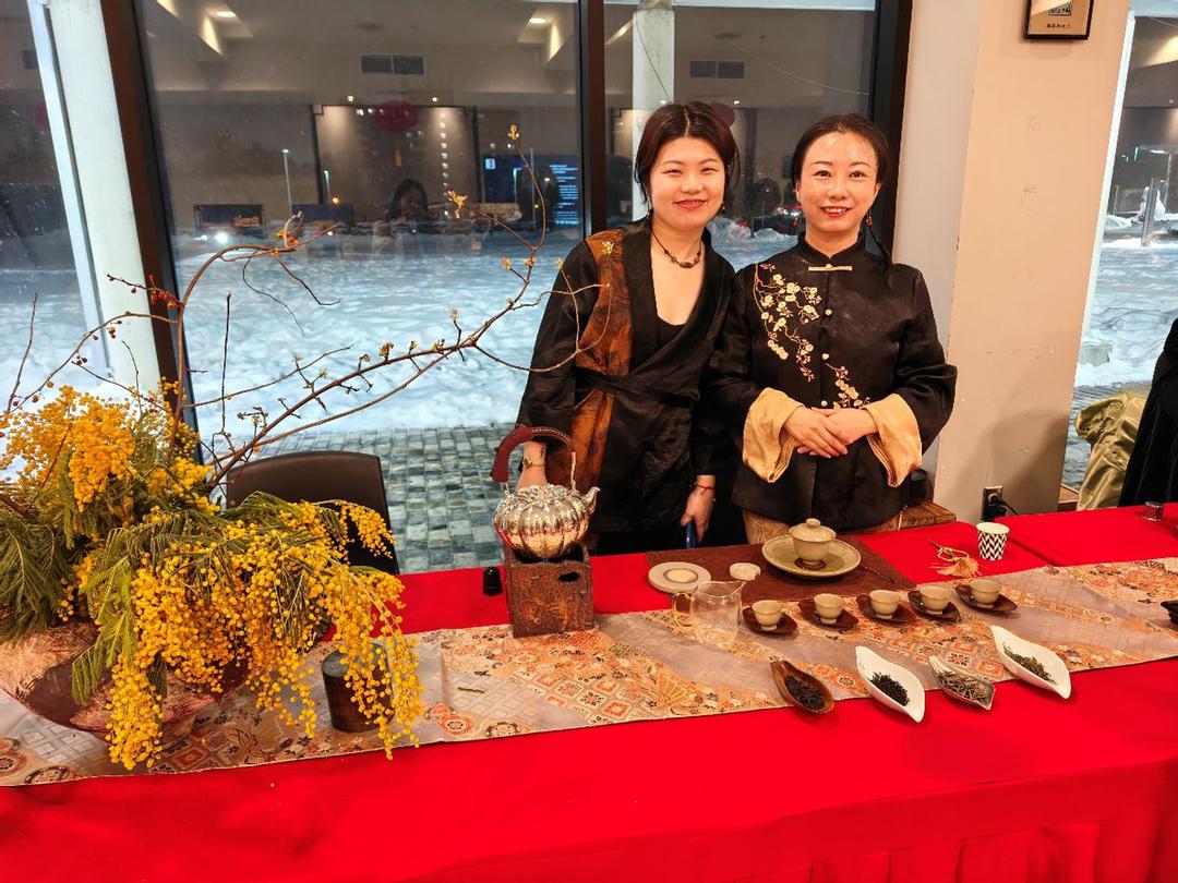 文化展示区同样人气高涨,成为嘉宾沉浸式体验中华文化的重要窗口。茶艺师汪明明现场展示中国茶艺,从选茶、温器到冲泡、奉茶,举止典雅、讲解细致,在袅袅茶香中传递中华茶文化的精神内涵。书法家李祥民挥毫泼墨,以春联和“福”字为载体,向嘉宾展示汉字之美与书法艺术神韵,作品笔力遒劲、气韵生动。剪纸艺术家李西秦巧手翻飞,以一把剪刀、一张红纸创作出寓意吉祥的作品,生动体现民间艺术的精巧构思与匠心传承。张晓丽的面塑作品造型生动、色彩鲜明,将传统技艺与生活情趣巧妙融合。王春明等制作的祥德斋糕点造型精致、风味醇厚,让嘉宾在品尝之间感受中国饮食文化的传承创新与新春年俗的温情韵味。