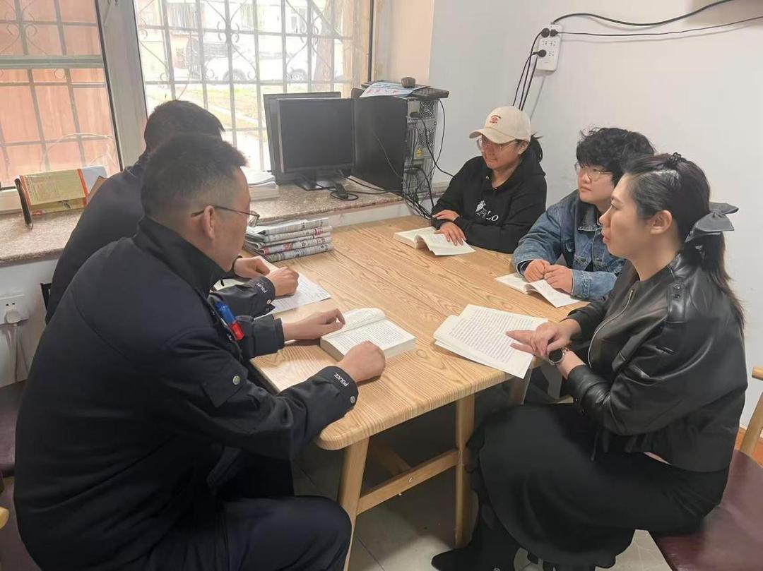 图为南直派出所社区民警与社区工作人员共同探讨矛盾纠纷化策略。共工社发