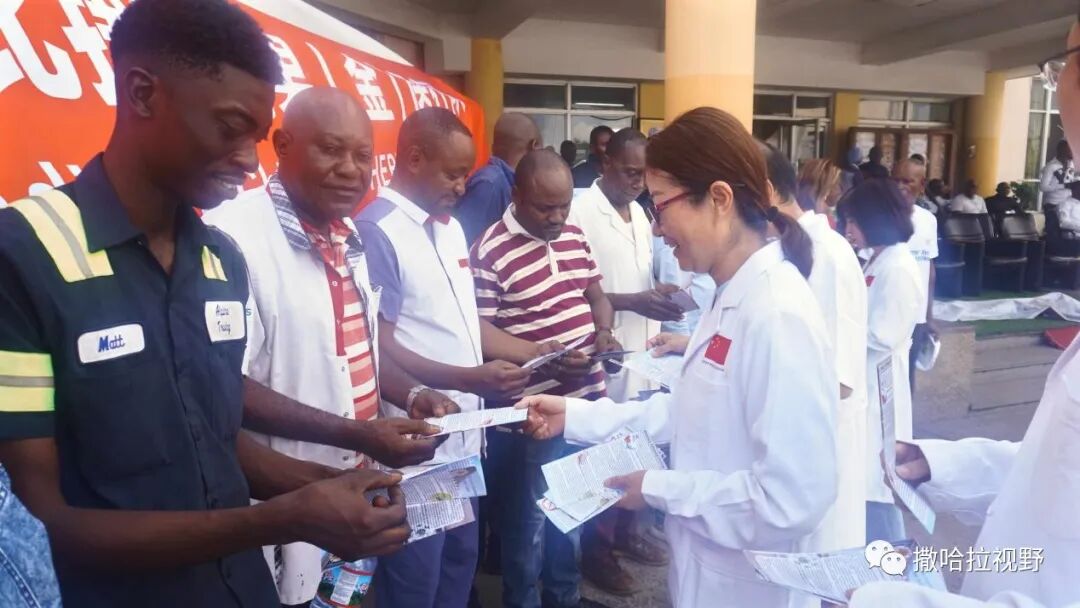 25日上午,在首府金沙萨的中刚友谊医院,中国医疗队员们向当地医师和民众开展疟疾防治知识科普,发放疟疾宣传手册及卫生用品。同日,中国医疗队在上加丹加省综合示范医院门诊楼前设立咨询点,开展疟疾防治知识宣传、咨询活动。