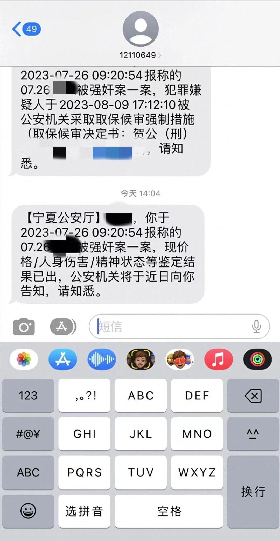 8月11日下午2时许,小梨收到了贺兰县公安局的短信通知,称长裙鉴定结果已出,将于近日内告知当事人。