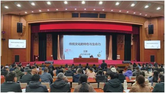 王蒙以其深厚的学养和宏阔的视野,从“中华文明五个突出特性、中华传统思路三性、中华三尚、中华精神、两个结合”等五个方面进行讲授。他的报告清晰地勾勒出中华传统文化的独特面貌与精神内核,深入分析了中华优秀传统文化作为“根基”和“命脉”的时代价值,深刻阐释了传统文化生命力历久弥新的源泉所在,深刻揭示了实现中国式现代化与中华优秀传统文化的内在联系,是对“两个结合”的一次生动诠释和有力践行。