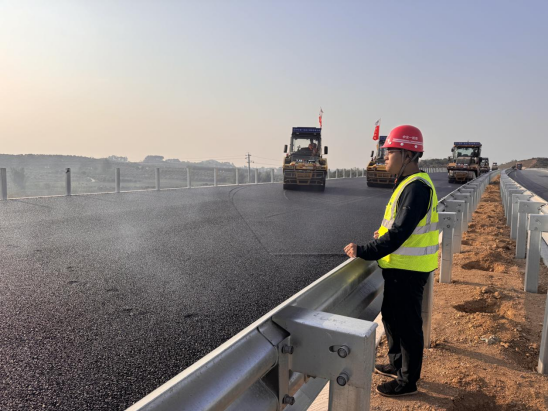 最难忘的是今年大干期间,我们顶着40℃的高温与雨季时间赛跑,衣服湿了又干、干了又湿。直到通车前夜,我站在平整崭新的路面上,看着绵延向远方的“黑色巨龙”,那一刻,所有的汗水与不眠夜都化作了心底涌起的自豪——这条路,是我们用责任和匠心一点点“铺”出来的,值了!